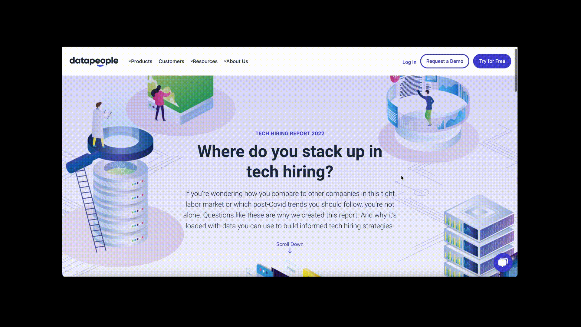 Datapeople was founded in 2015 with the belief that people deserve a more human recruiting experience. Their goal is to make hiring more efficient and fair to everyone by providing a recruiting analytics platform and a job editor that helps your recruiting team write a more inclusive job post.